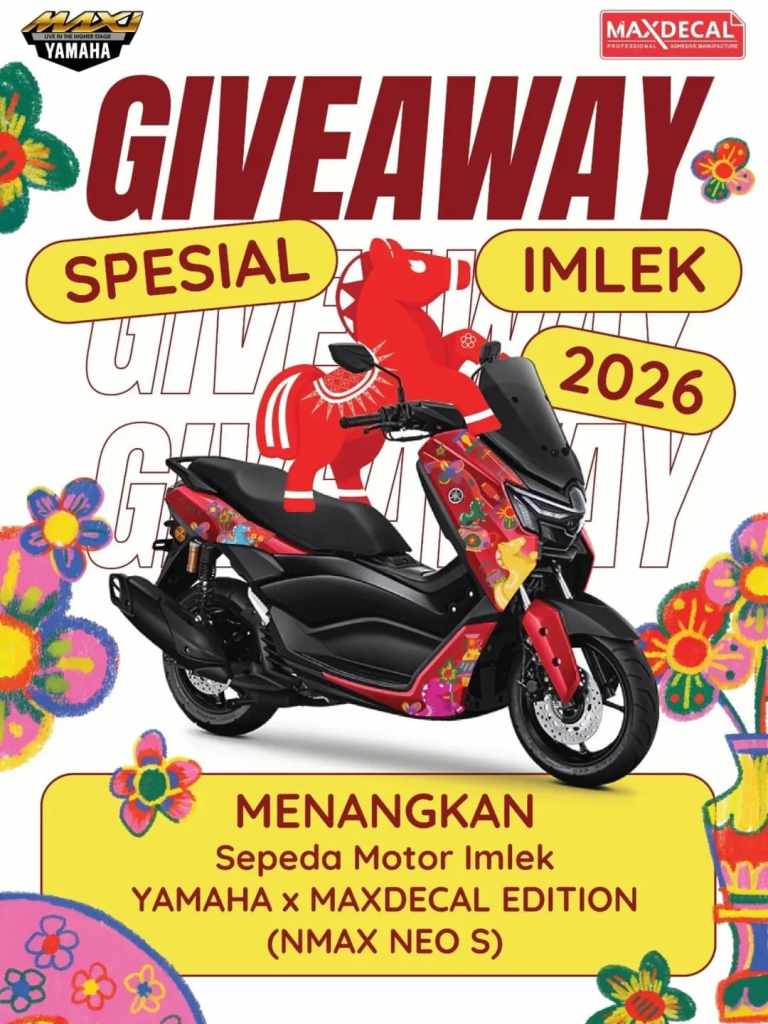 Tuls.. beneran gratis. Asyiknya, Yamaha NMAX Neo yang bakal diberikan gratis pada seseorang yang beruntung ini juga tampil gak standar, alias punya grafis khusus. Decal spesial Imlek nih dengan dominasi warna merah