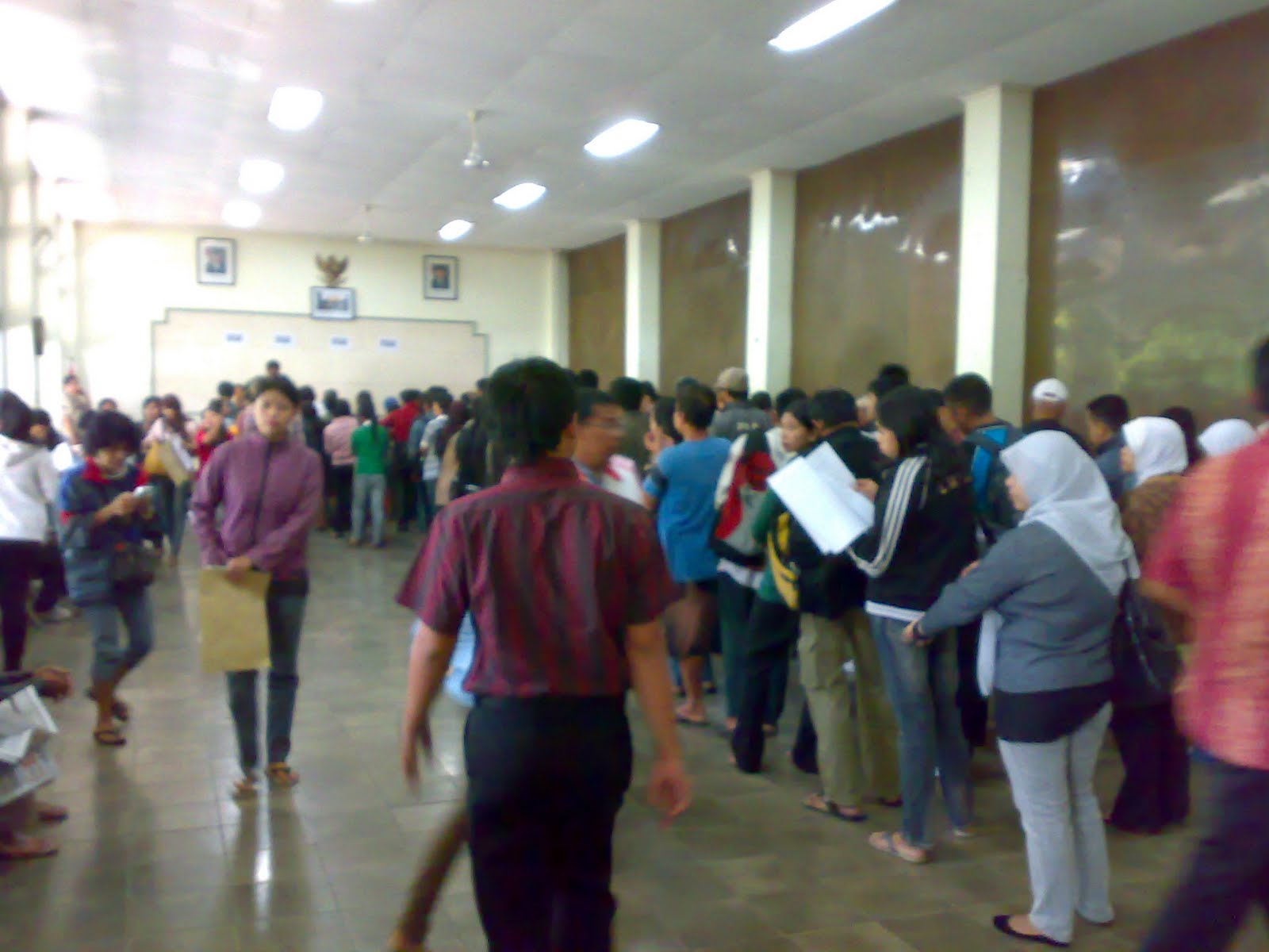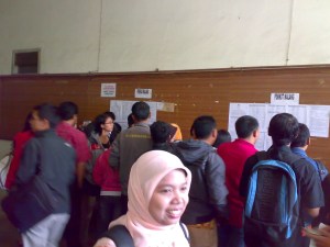 Ternyata, jam 8 pagi sudah antri panjang, kira-kira 20 meteran, itupun dibagi 5 barisan…Bayangkan, berapa ratus manusia berjejal di situ….