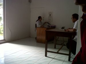 @ obie : oh, yg kayak di optik gitu yak?? sekarang, kayak-e cuman formalitas aja, wong dokter-e yo nggak niat. sambil nunjuk huruf, wonge SMS-an…