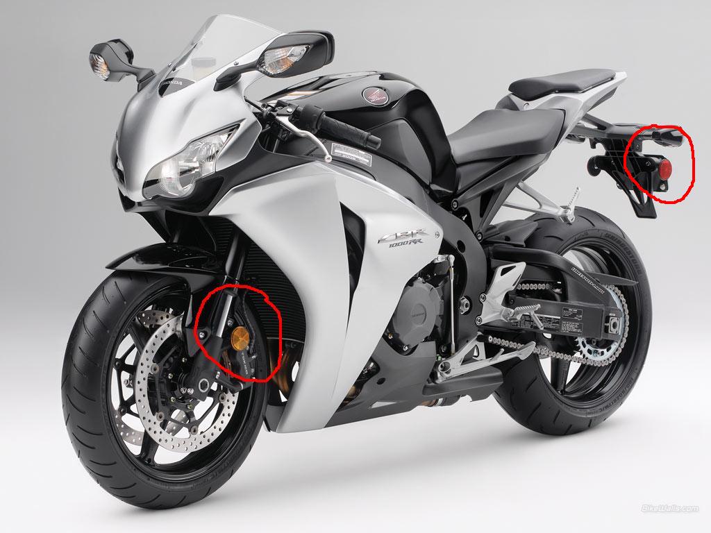 Padahal, di luar negeri sono, motor gede aja masih dilengkapi mata kucing lho masbro. Malah bentuknya masih jadul banget, lingkaran kuning, menempel pada sokbreker depan. Nggak main-main, varian Honda CBR1000RR, Honda ST1300. Padahal desain dan engine masa kini kan?
