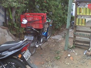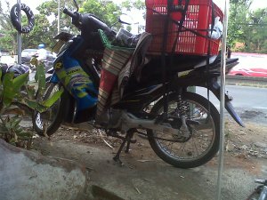 Hari Minggu pagi, saia sekeluarga berangkat ke gereja. Seperti biasa, jam 06.30 langsung tancap gas naik si meggy. Udara pagi agak dingin, saia gak memacu meggy kenceng-kenceng, sekitar 30-40an kpj aja, lha kebetulan si kecil minta duduk depan pula. Sekitaran Klenteng Lawang, lha kok mendadak terasa handling si meggy liar banget. Gak sampe sedetik, ban belakang geal-geol gak karuan. Saia berusaha gak panik, mengerem bertahap sambil berusaha minggir. Berhasil, saia berhenti di pinggir jalan sekitar 200 meteran dari mulai ngepot tadi, lalu lintas lagi sepi. Istri sama si kecil saia suruh turun dulu. Saia cek, ban belakang kempes total, gak ada angin blas. Akhirnya saia tuntun sambil cari bengkel tambal ban.