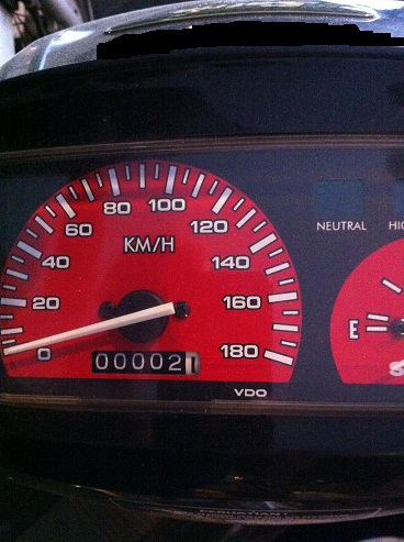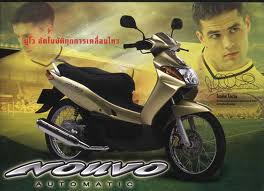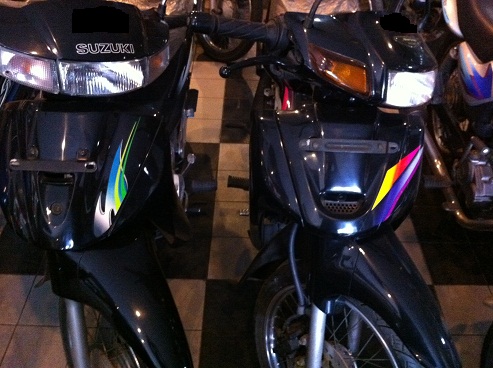 Kalo jenisnya, ada Yamaha Nuovo generasi awal, biasanya dikasi istilah “Nuovo Lele” (karena bentuk headlamp pipih kayak kepala ikan lele) tahun 2002 dan 2003. Nah lo, 9 tahun lewat, masih ada barang barunya??? Kilometer masih 2 kiloan, alias gak jalan kemana-mana.