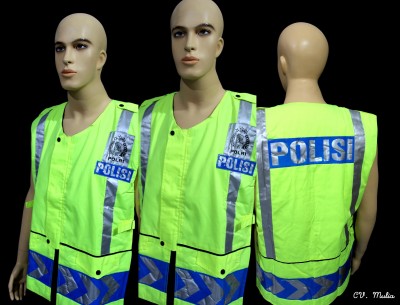 Sebenarnya, rompi ini bertujuan selain penambah perlindungan badan (padahal kayaknya tipis lho ), juga sebagai identitas sebagai aparat.