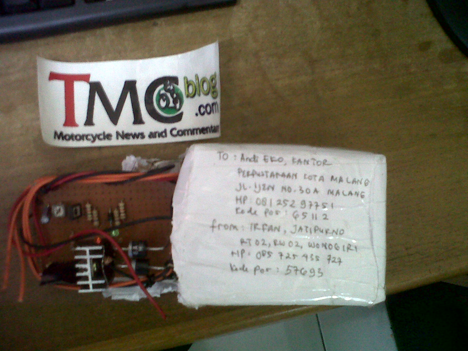 Habis chat via sms dengan si Irpan, Senin, 2/7/2012 paketan berisi charger aki rakitan tangan si jomblizz mendarat di meja resepsionis kantor.