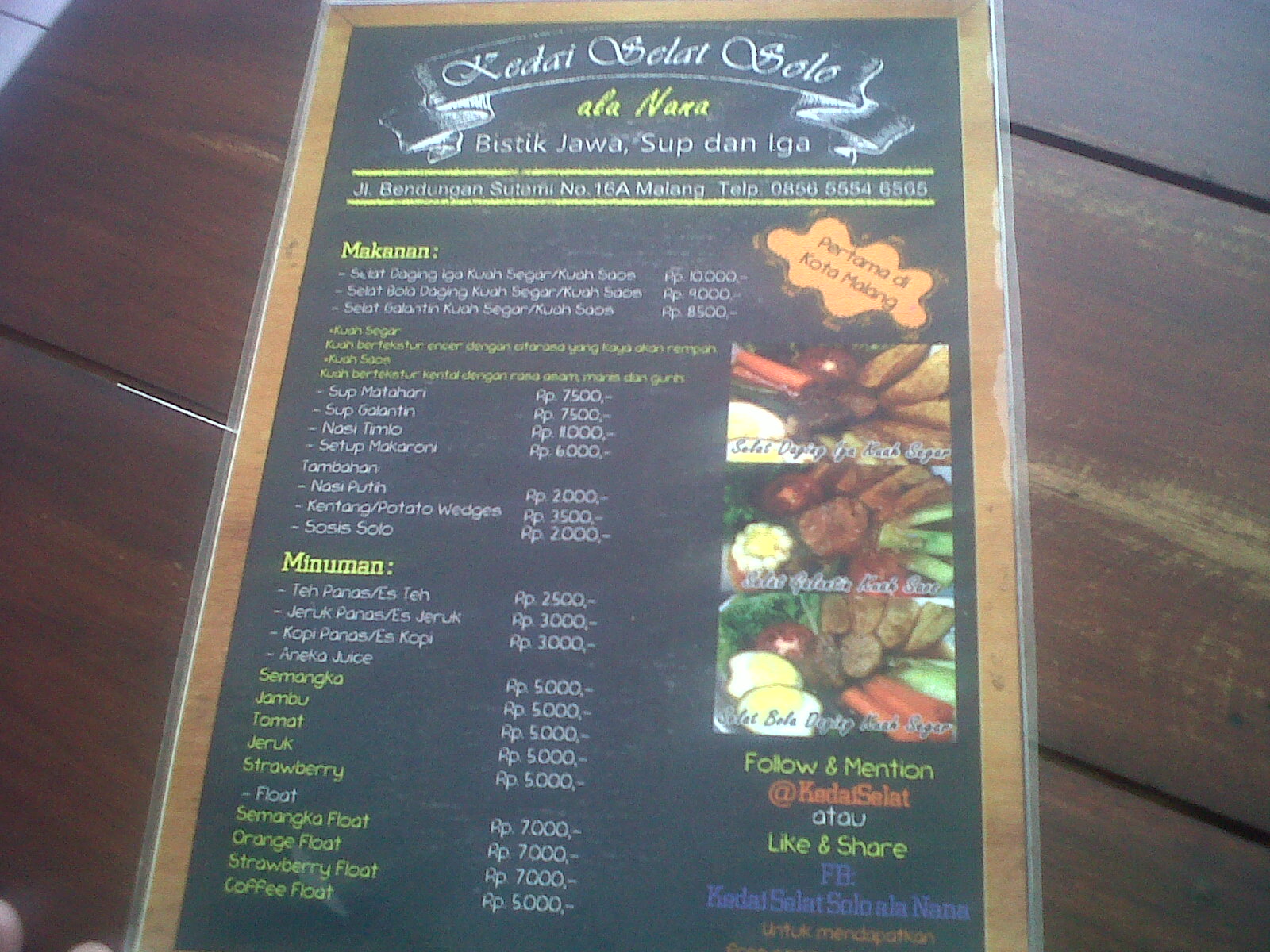 Bisa nih jadi alternatif pilihan makan bila bosan makanan yang itu-itu saja. Monggo, yang mau mencoba kuliner ini, kata yang punya sih, satu-satunya di Malang π