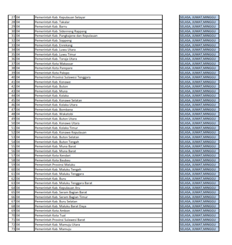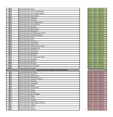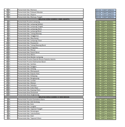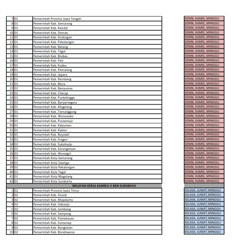 Seperti contoh di atas, untuk daerah Cilacap, jadwal input data EPUPNS adalah : Senin, Kamis dan Minggu