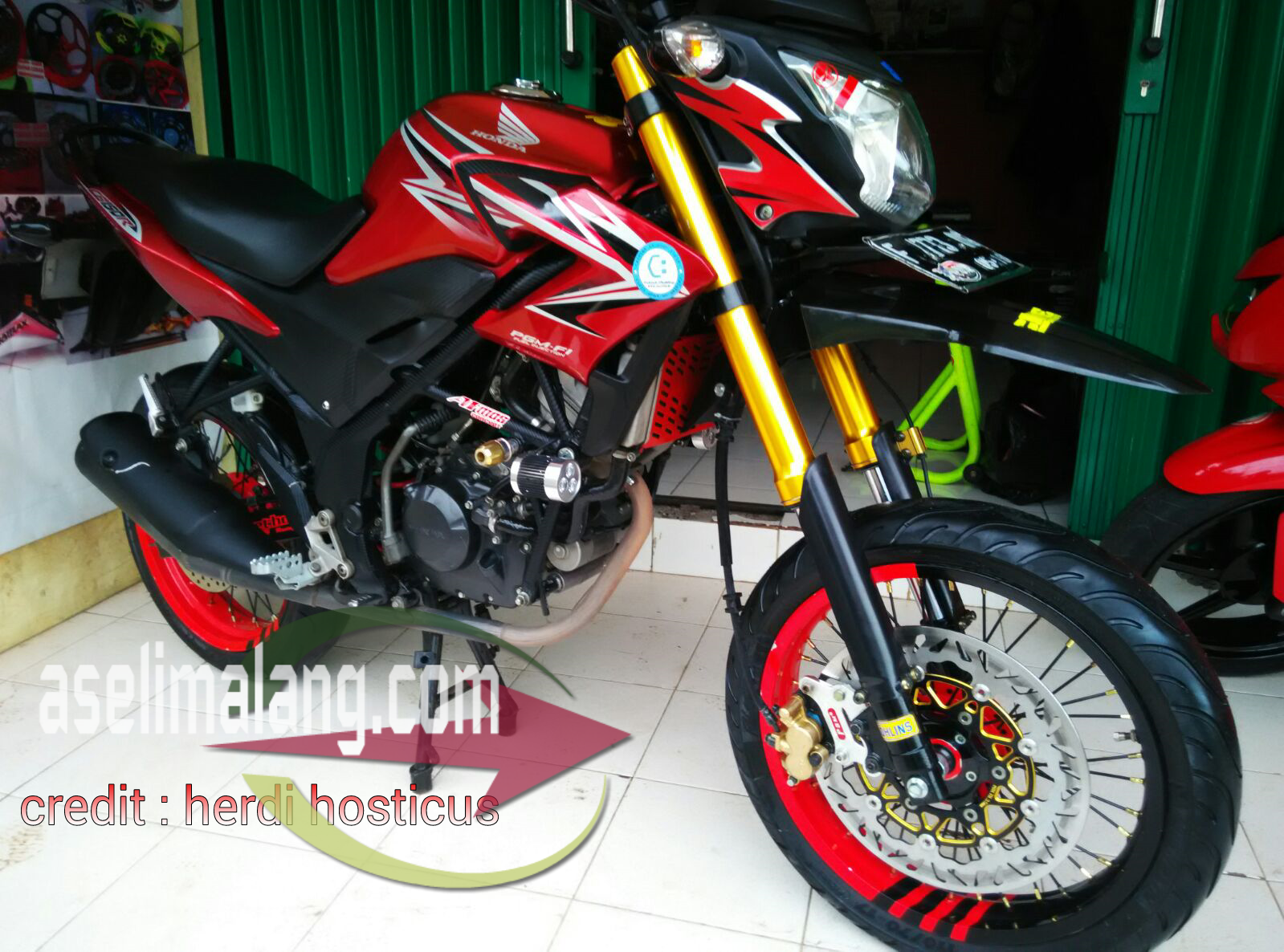 Dunia modifikasi, memang tiada habisnya. Kreatifitas tiap orang, berbeda-beda. Kembali bahas modifikasi Honda CB150R gen awal, yah, kita panggil OCB aja ya?? Bro satu ini, panggil aja Herdi. Berdomisili di Jakarta. Awalnya, pingin tunggangan yang jangkung, supaya lebih enak nerjang lubang dan banjir di Jakarta katanya. Berbekal Honda OCB lansiran 2013, langsung berkutat di roda.