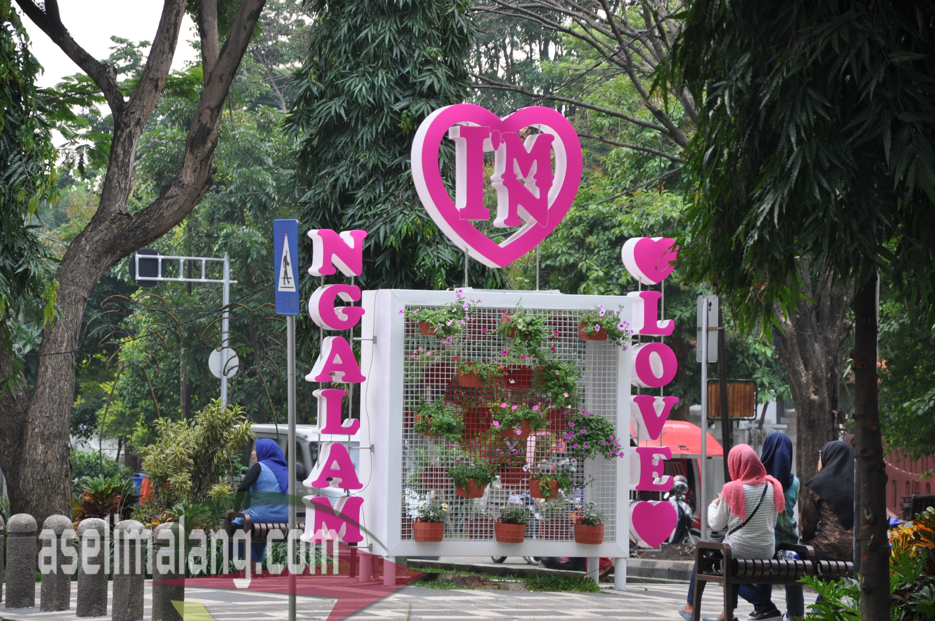 Lha soal tulisan ‘Ngalam I’m in Love’ itu disebut Abah (sapaan akrab walikota Malang ini),  makna filosofinya adalah mengajak semua warga untuk menjaga dan merawat lingkungan di Kota Malang. Akhirnya, melalui dinas terkait (DKP), Pemerintah Kota Malang, membersihkan beberapa gembok yang sudah terpasang di kawat jaring monumen, sekaligus memasang pot-pot berisi tanaman bunga untuk mengisi kekosongan di jaring tersebut. Diharapkan, dengan adanya tanaman itu, kesan adanya tempat untuk “gembok cinta” dapat perlahan dihilangkan. Pas saia lewat daerah situ, sempat ambil beberapa gambar.