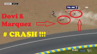Le Mans Prancis, ternyata sukses merobohkan sekitar 9 pembalap, termasuk Marc Marquez (Honda) dan Andrea Dovizioso (Ducati), yang entah kenapa, bisa janjian, jatuh berdua 😆 Beneran sial si Dovi, tiap balap kok jatuh melulu ya? Kalo nggak jatuh sendiri, eeh, diseruduk pembalap lain.