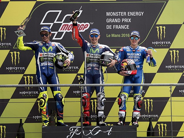 MotoGP Le Mans 8/5/2016 kemarin, lumayan, menghapus kesan balap turing di seri-seri sebelumnya 😆 Lha gimana nggak turing, lha wong urutan pembalap mulai start hingga finish hampir tak berubah? 😆