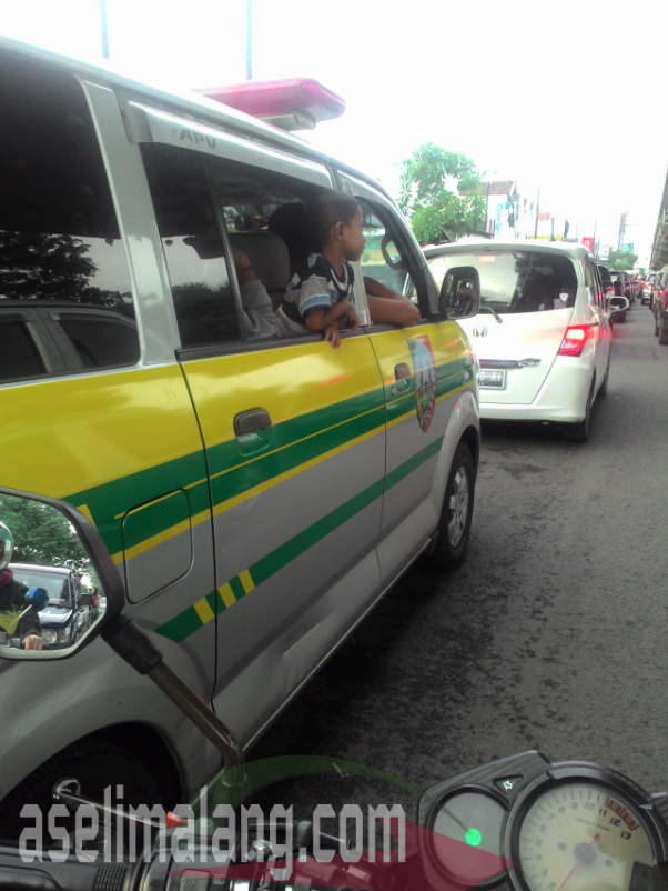Pulang lembur Sabtu lalu, seperti biasa, disuguhi kemacetan parah di arah keluar kota Malang. Sejak daerah Blimbing, sudah terasa lalu lintas mulai tersendat. mendekati flyover Arjosari, antrian kendaraan mulai tidak bergerak. Hal yang rutin terjadi dan dialami semua pengendara baik R2 dan R4 kala weekend di jalur keluar masuk kota Malang. Bersama ciput, saia juga terjepit di antrian kemacetan di bawah flyover. Setelah merambat, akhirnya, arus terhenti total dekat persimpangan rel KA. Saat itulah, pandangan mata kok ya ndilalah, tertuju pada sebuah mobil ambulance yang juga terjebak kemacetan. Tak ada yang spesial dengan Suzuki APV berkelir silver dengan strip kuning hijau dan tulisan ambulance serta logo salah satu daerah di Jawa Timur. Juga lengkap dengan sirine dan lampu strobo merah di bagian atas mobil. Saat itu, semua lampu dan sirine kondisi mati. Eh, dari spion, kok terlihat, sang pengemudi, mungkin kisaran umur 30-40 tahunan, sambil merokok dan mengobrol dengan penumpang perempuan di sebelahnya, hanya mengenakan, maaf, semacam kaos singlet tanpa lengan warna hitam.