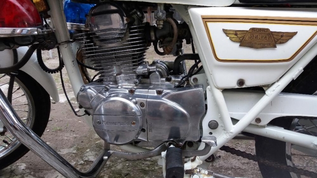 Nah, beberapa waktu lalu, saat iseng membuka salah satu situs jual beli online, ada penampakan sosok Binter Merzy yang menggoda. Keluaran tahun 1983 akhir, kondisi orisinil, sudah menggunakan CDI. Yang asyik, menurut empunya jualan, ini Merzy lengkap surat-suratnya, berikut kelengkapan ekstra. Ekstra??? Ya, karena ini klaimnya adalah salah satu kes Patwal/Patroli Pengawal. Berwarna putih, dengan kelengkapan antara lain windshield, besi engine guard, lampu rotator dan side box/boks samping dengan stiker highway police. Wow…jadi ingat film Warkop nih, CHIPS….mantap.