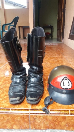 Klaim orisinal, memang perlu dibuktikan sih, salah satunya cek fisik dan dokumen. Beberapa kekurangan sudah disampaikan dalam keterangan, antara lain catnya yang repaint/cat ulang, serta pajak yang mati beberapa tahun. Oh iya, yang unik adalah, adanya beberapa kelengkapan non motor yang disertakan. Yaitu sepasang sepatu boot dan helm ala polisi jaman dulu, CHIPS. Hehehehe…unik kan??