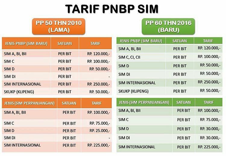 Khusus SIM, biaya masih tetap kecuali SIM D1, yang naik IDR 5.000 saja.