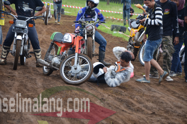 Lainnya, yang masih kuat terus lanjut lomba hingga 2 putaran. Dan akhirnya, pemenang adalah joki Honda S-90 terondol warna oranye. Sukses menerobos garis finish pertama, sang pembalap langsung roboh sambil megap-megap kelelahan serta kehausan. Kru pun langsung siap merespon, dengan memberikan segalon air mineral yang diguyurkan langsung. Wehehehehe…itu bercanda kok masbro..guyonan saja. Hasil keisengan rekan setimnya, yang justru senang kala temannya ndlosor kehausan, malah sekalian dikerjain, hihihihi…