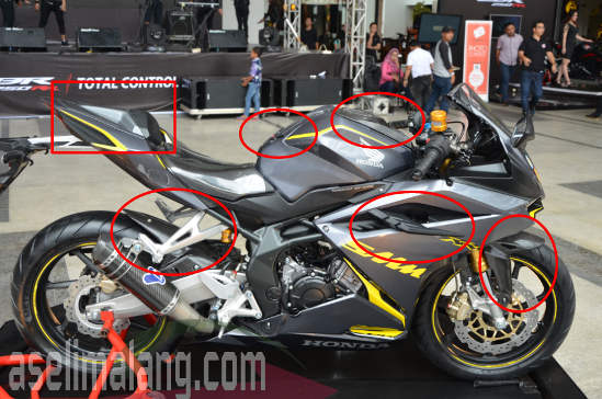 All New Honda CBR250RR, seperti laiknya tipe lain keluaran PT AHM, juga dilepas ke pasaran diikuti dengan beberapa aksesoris resmi Honda. Ingin tahu nggak, beberapa gambar Honda CBR250RR yang memakai aksesoris resmi itu?