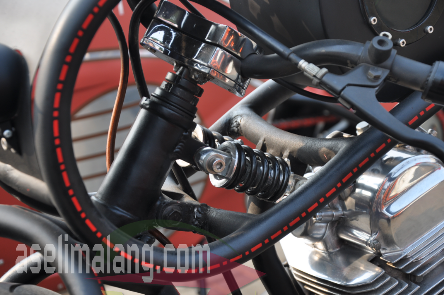 Dari gelaran akbar Suryanation tahun lalu, ada beberapa foto salah satu motor yang luput dari pengamatan saia. Sangat unik. Motor berbasis Honda CG 125 ini, secara fisik, memang sudah berubah total. Sudah dimodifikasi gila-gilaan alias custom. Rangka alias sasis, custom, sang builder membuat sendiri dari pipa yang diroll.