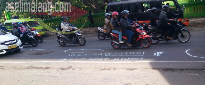 Ada 2 ‘manfaat’ sebenarnya dari aksi ‘graffiti’ warga ini. Pertama, coretan di sekitar lubang jalan ini, bisa menjadi semacam peringatan bagi pengendara yang melintas, bahwa ada lubang disitu, yang berbahaya, sehingga bisa dihindari.