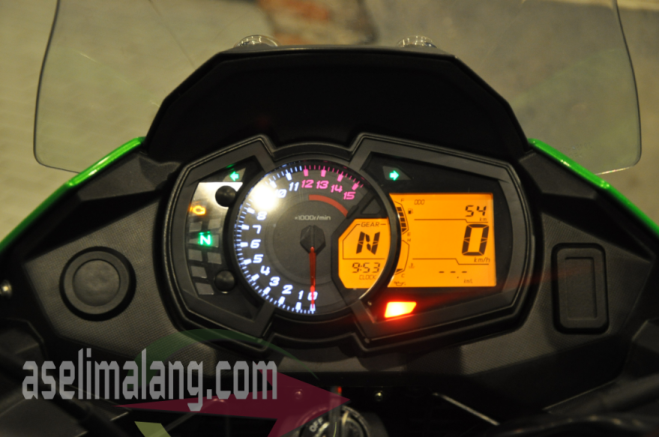 versysNah, saia berkesempatan mengamati langsung, sosok motor 250 cc Kawasaki ini, yang mengusung tagline “Any Road, Any Time”. Secara fisik, terlihat lebih tinggi. Maklum, jarak terendah ke tanah dibuat lebih jauh, khasnya penjelajah. Plus tampilan khas, yaitu windshield tinggi diatas headlamp. Mesin 2 silinder berkubikasi 249 cc dengan pasokan BBM injeksi, siap membawa ridernya berkelana. Halah…macam bang Rhoma saja πŸ˜† Saia coba merasakan ergonomi dengan duduk diatas joknya. wih, nyaman banget rasanya. Kaki menapak lantai sepenuhnya, masih ada space sih, menekuk sedikit πŸ˜†Β  Lha jelas, spek saia 183/80 je…Tangan meraih setang yang tergolong tinggi, pas nih, bakal nyaman diajak jalan jauh. Yang jelas, untuk ukuran tinggi badan OI (orang Indonesia) masih sangat bersahabat.