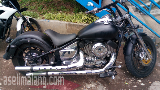 Mantap. Satu kata ini yang saia ucapkan dalam hati ketika bertemu dengan pemilik sebuah motor custom di jalanan. Yups, beberapa hari lalu, saat melintas di area Blimbing, Kota Malang, saia ketemu dengan sebuah moge. Berkelir hitam doff, dengan model ala moge Harley Davidson. Mesin berkonfigurasi V-Twin, dengan knalpot free flow. Blarr—blarr. Posisi rider santai, hampir selonjoran kakinya.