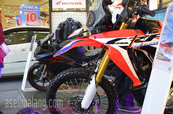 Nah, ngomong-ngomong, berapa nih harga Honda CRF250 Rally ini di Malang? Hmm, dengan mesin 250 cc bersilinder tunggal dan sistem injeksi , dibanderol pada IDR 64 jutaan. Weleh…selisih tipis dengan Honda CBR250RR di sampingnya tuh.