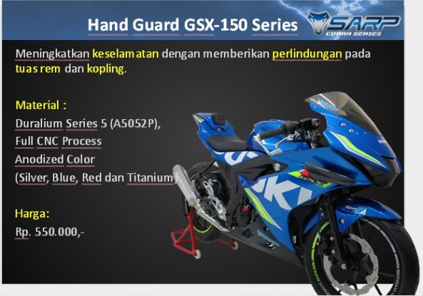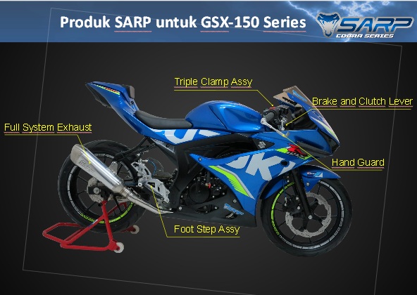 Nah, khusus pemilik motorsport Suzuki terbaru, yaitu GSX series yang meliputi GSX-R 150 dan GSX-S 150, tidak perlu khawatir soal part racing ini. Suzuki, menghadirkan part racing resmi mereka, khusus. Diberi label SARP, yaitu singkatan Suzuki Authorized Racing Part. Ini adalah divisi khusus aksesoris dan perangkat racing Suzuki.