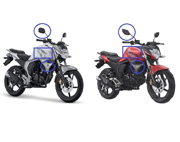Perbedaan dengan Byson edisi sebelumnya ada pada grafis striping , kemudian emblem ‘Byson’ kini pindah ke bagian tangki sedangkan emblem ‘Yamaha’ tetap ada di shroud. Perbedaan lain adalah bentuk spion, yang kini lebih stylish dengan bentuk lancip, menggantikan bentuk oval membulat sebelumnya. Eh, mirip spion kepunyaan Yamaha Vixion yak?