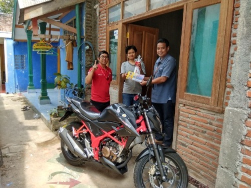 Widih, lumayan kenceng juga nih distribusi varian anyar motor Honda. Nggak begitu lama jeda dengan ibukota ternyata. Dan wahnya lagi, sudah ada yang ditebus konsumen, dan sudah diantar juga ke pemilik barunya. Kok ya bertepatan waktunya dengan hari pelangggan nasional. Itu lho, yang jatuh tanggal 4 September lalu. Secara langsung, pak Yudi, branch manager MPM Malang, menyerahkan langsung pada konsumen yang beruntung ini. Asyik nih, tebus motor varian terbaru , diantar langsung plus bonus hadiah langsung saat hari pelanggan nasional. Sedapp…spesial