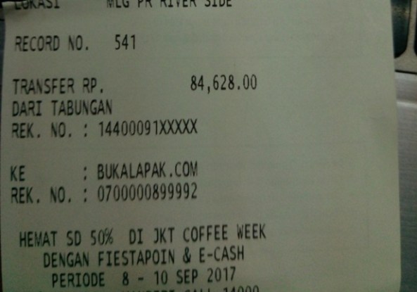 Termasuk saia nih, hehehehe. Sudah beberapa kali transaksi online, entah langsung dengan seller alias penjual, ataupun melalui macam toko online dan sebangsanya seperti bukalapak.com. Nah, saia punya pengalaman dengan si buka lapak. Seperti biasa, ceritanya pilah-pilih barang yang sesuai kebutuhan. Kebetulan waktu itu lagi cari pakaian olah raga buat si kecil. Beres, ketemu model dan ukuran yang sesuai, langsung deh pilih menu pembayaran melalui transfer lewat bank. Sambil pulang kerja, sedikit rada rada blank karena capek, mlipir deh ke salah satu ATM. Maklum , lagi nggak demen aplikasi online liwat hape. Wong ndeso tenan kok