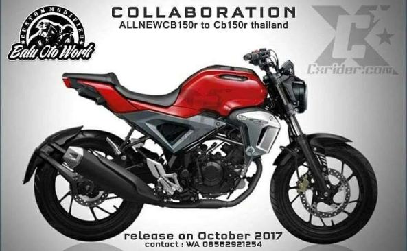 Dengan banderol yang lumayan ternyata, bila dirupiahkan, cukup membuat kerut kening kalau pingin memboyong ke tanah air. Maklum juga sih, asli garapan pabrikan, hehehehe. Nah, antusiame penikmat motor di tanah air tentang model ini, tak pelak membuat heboh. Termasuk, blogger Jateng yang spesialis membuat desain motor modifikasi . Kang Ari, pemilik warung cxrider.com ini, memang sejak awal sudah demen corat-coret , via aplikasi sih tepatnya, merubah desain dan bentuk motor. Tangan kreatifnya, akhirnya menelurkan sebuah desain ala Exmotion dengan basis Honda New CB150R yang merupakan produk resmi AHM.