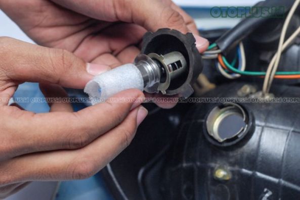 Tadi malam, eh sore kemarin persisnya, tetangga dekat rumah ujug-ujug mencari saia. Tergesa-gesa, sampai istri saia bingung , ada apaan? Ternyata, bohlam headlamp BeAT milik ibu ini rupanya putus. Lha hendak dipakai bepergian sampai malam rencananya ke desa sebelah, khawatir. Cari saia mau minta tolong ganti bohlam depannya. Ya wis, kebetulan santai habis pulang kerja, saia minta dibawa ke rumah saja motor sama bohlam barunya.
