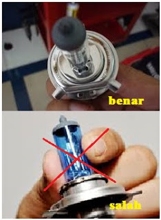 Jadi, seperti itu ya masbro dan  mbaksis, kenapa bohlam halogen tidak boleh dipegang dengan tangan langsung, kudu dipegang di bagian bawahnya saat memasang. Untuk beberapa merk dan tipe, kadang juga disertakan semacam busa/spon pada bagian kacanya, supaya memudahkan saat memegang dan memasang, terutama jenis yang cara pasangnya dari bagian depan.