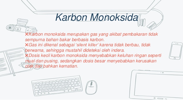 Karbon monoksida disebut silent kill karena berpotensi meracuni dan membunuh tanpa terdeteksi. Gimana nggak, lha ini gas sama sekali gak nampak. Nggak berbau serta nggak berwarna. Serem ya?? Kalau diurut,munculnya gas CO merupakan hasil pembakaran dari mesin kendaraan bermotor yang tidak sempurna saat membakar bahan bakar berbasis minyak. Setelan mesin yang nggak pas, merupakan salah satu biangnya, termasuk bisa juga dari kualitas bahan bakarnya.