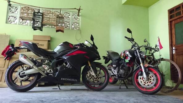 Ada yang kepingin? “Takis deh, preteli CBR-mu, kelamaan nunggu Honda CB250R ” ujar mas Agung sang pemilik sambil tertawa. Hehehehehehe…