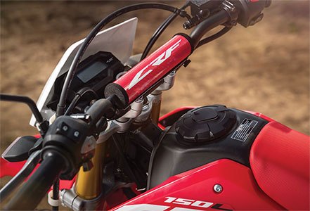 Khusus Honda CRF150L, ada beberapa item yang bisa ditebus dan dipasang langsung pada motornya. Yuk, kita rinci beberapa diantaranya. Dari atas dulu ya, ada yang namanya bar pads. Dari namanya, kentara benda ini terpasang pada setang. Yups, terpasang pada bagian tengah setang, yaitu pada palang tambahan penguat setang. Benda berbentuk silinder berbahan busa ini, berfungsi untuk melindungi pengendara dari hantaman setang kala terjatuh. Jadi lebih aman karena ada busa yang relatif lebih empuk dibanding besi setang