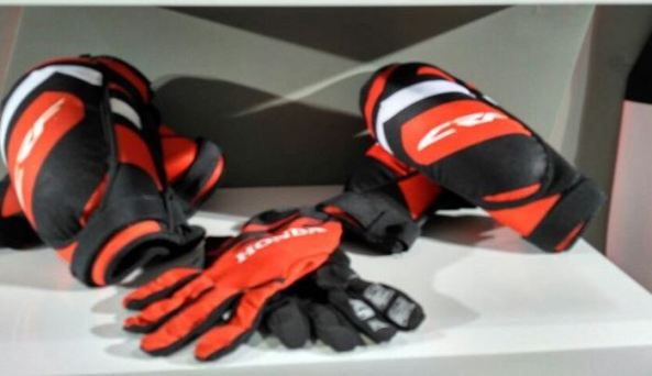 Kelengkapan safety untuk penunggang CRF tersedia juga knee & elbow protector. Berbahan plastik keras yang dilapis bahan fabric semacam bahan jersey. Makin lengkap dengan glove alias sarung tangan dengan desain printing kombinasi warna merah dan hitam, juga ada yang dijual dengan harga IDR 140.000 yang tersedia all size alias ukuran massal.