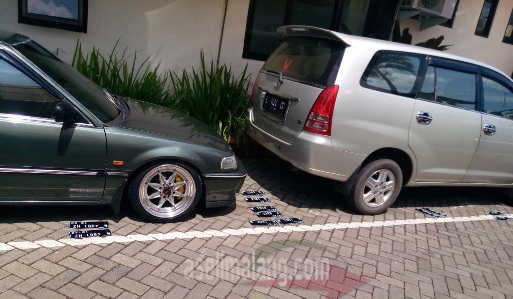 Usai ambil bukti PKB berikut STNK, diarahkan ke tempat  pencetakan plat nomor polisi, yang lokasinya di luar gedung, sisi timur. Sudah ada berjejer beberapa WP (wajib pajak, bukan WP lain :mrgreen: ) yang juga antri cetak nopol. Menyerahkan STNK kepada petugas di loket cetak TNKB, lalu tunggu sebentar. Jangan ditinggal pergi ya, karena prosesnya cepat dan juga rawan karena meninggalkan STNK. Sekitar 5 menitan,  sudah dipanggil nama sesuai STNK dan taraaa… 2 biji plat  nopol R4 yang notabene masih basah catnya diserahkan. Basah, karena memang barus aja dicetak, mas petugasnya yang bilang sendiri, ‘mas-pak, cat basah’. Alhasil, saia ikuti jejak beberapa WP yang menjemur sebentar plat nomor di dekat parkir mobil petugas yang terkena panas sinar matahari. Pantes nih, tadi kok lihat ada banyak nopol tergeletak di jalan itu, rupanya pada njemur, hehehehehe. Nggak hanya blogger yang rajin njemur ya, WP juga kudu jemur nopol supaya lekas kering 😆 😆