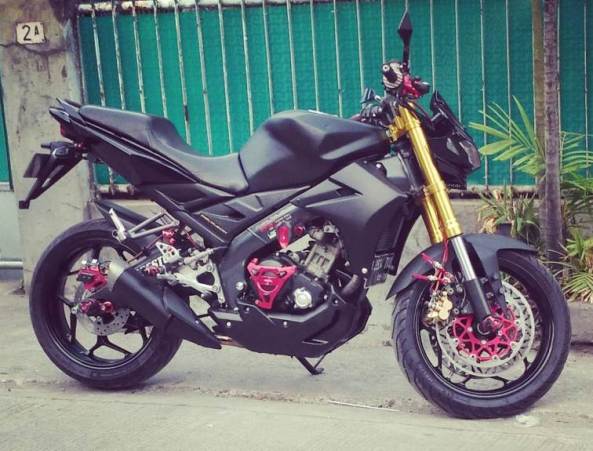 Di tangan mas Ardy, pemilik yang domisilinya di ibukota ini, tampilan standar Vixion yang terbilang kalem, berubah drastis. Gahar, kekar, dan gagah, menjadi satu komentar yang saia rangkum kala melihat gambarnya. Asyiknya, roh streetfighter yaitu motor jalanan, nggak hilang sama sekali. Tetap kental terlihat, nggak berubah ke aura sporty, cruiser atau yang lainnya.