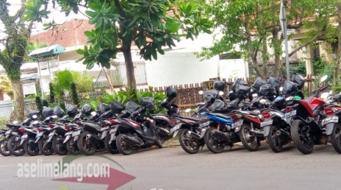 Seringkali jukir cuek dengan kondisi kendaraan yang terparkir. Pokoknya biaya parkir dibayar , ya sudah. Motor diparkir seenaknya, mepet-mepet yang penting di lahan parkirnya muat sebanyak-banyaknya. Ujungnya kan dapat banyak tuh duit parkir. Pokoknya kurang peduli sama motor deh. Nah, kali ini, ada pemandangan yang lain di area parkir jalan Bromo Kota Malang ini.