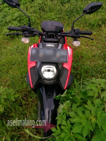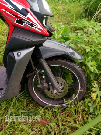 Yang jadi pembeda dengan skutik pada umumnya, salah satu adalah sepatbor depan yang bergaya ala motor offroad , rada panjang dan membengkok ke bawah ujungnya. Mirip versi mini sepatbor motor trail ya?