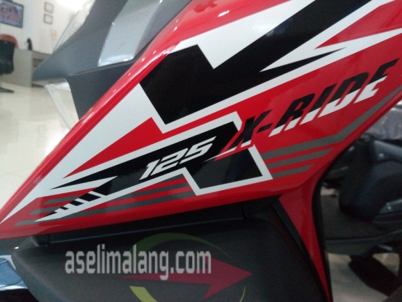 Secara fisik, X-Ride 125 baru ini garis besarnya lebih stylish dan justru, sedikit berkurang kesan ekstremnya dibanding X-Ride generasi awal. Itu lho, yang matanya belo, bundar besar. Body New X-Ride 125 hilang sudah kesan ‘kasarnya’ , kini lebih ‘halus’ layaknya skutik lainnya. Nggak ada lagi guratan-guratan rada kasar khas motor yang mengarah ke motor petualang.