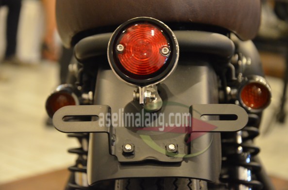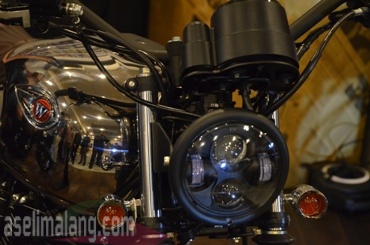 Lampu depan berisi bohlam digusur. Gantinya, masih berbentuk bulat klasik, namun menggunakan teknologi dan trend terkini. Berisi lampu LED dengan model daymaker. Lagi trend nih di kalangan motor custom, lampu bulat pesek yang isinya lampu LED dan terang maksimal. Gaul bingits