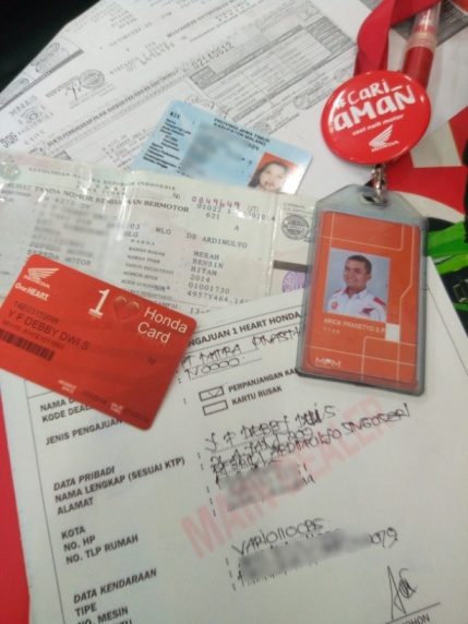 Diterima salah satu staf dealer, yaitu mas Arick, yang dengan ramah menjelaskan prosedur serta persyaratan untuk perpanjangan alias registrasi ulang kartu OHC ini. Yaitu, selain kartunya, juga dilampirkan identitas diri pemilik kartu berupa KTP dan juga STNK kendaraan Honda-nya. Kebetulan, pas dibawa semua nih. Jadi bisa langsung diproses. Saia serahkan semua persyaratan tadi, lalu diberikan form isian data-data pemilik berikut data kendaraannya.