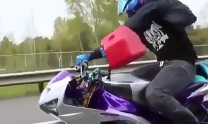 Artikel ringan nih di hari Jumat. Nemu video, seorang bikers di luar negeri sono, yang kebetulan, isi tangki BBM-nya menipis alias mulai habis.. Berhubung sedang senang-senangnya riding, meski perangkat keselamatan kurang–jangan ditiru–, jadi malas mau berhenti atau melipir ke SPBU terdekat. Entah malas atau entah SPBU terlalu jauh, saia juga kurang ngeh.