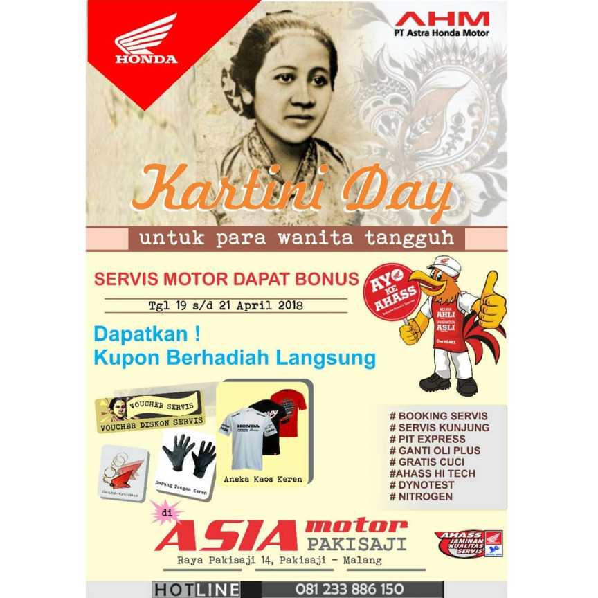 Yuk, sambil merawat motor, berpeluang dapat hadiah menarik dan bermanfaat. Yang di Malang, merapat deh ke Asia Motor. Ingat ya, ini khusus kaum hawa alias wanita lho ya, jangan salah. Tapi, bisa deh ajak istri, pacar atau teman dekat (tapi mesra) buat ikutan program ini, hehehehe. Mau booking service dulu juga bisa, supaya nggak antri, tinggal telpon saja. Semoga berguna