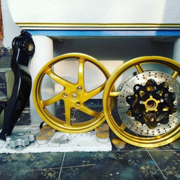 Mantap kan? Sekilas minim ubahan, tapi lirik roda, aje gile… Masih ditambah pula dengan ban yang lumayan gede, ban depan 110/60-17 sementara ban belakang berukuran 160/60-17.