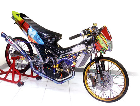 Dunia bikers alias penikmat dan pengguna sepeda motor, memang luar biasa. Begitu banyak yang bisa dilakukan dengan motor, alias modifikasi. Ya karena dari bentuknya saja, celah dan peluang untuk dimodifikasi memang banyak sekali, tergantung arah modifikasi dan selera sang pemilik.