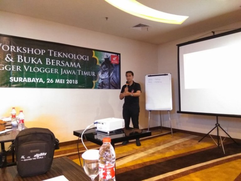Sabtu lalu, saia berkesempatan bergabung dengan beberapa teman blogger dan vlogger dalam acara sejenis, yaitu bukber. Hanya saja, kali ini sedikit lain. Yups, dikemas dengan acara workshop, sebagai pengisi waktu ngabuburitnya :mrgreen:  Makanya, dititeli ‘Workshop Teknologi & Buka Bersama’ Blogger & Vlogger Jawa Timur’.. Meski dalam waktu singkat, setidaknya ada 3 materi yang disampaikan oleh tim dari MPM yaitu sekilas teknologi yang tertanam pada All New Honda Vario 150, Honda CMX500 alias Rebel dan sosialisasi bale Honda 2018