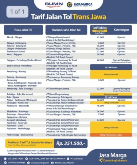 Kalau dihitung secara perkiraan kasar nih, biaya tol dari Jakarta hingga Surabaya, biaya tol-nya saja ada di angka IDR 351.500. Termasuk ‘fasilitas’ tol gratis karena status fungsional alias sementara.
