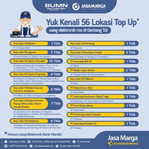Selain di gerbang tol, juga ada armada pengisian ulang saldo yang bergerak alias berbentuk mobil. Yang ini hanya ada 5 unit yang tersebar di beberapa lokasi saja.